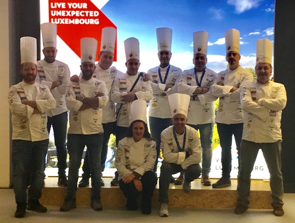 Nel più importante concorso di cucina al mondo, il Team Calabria dell’Associazione Professionale Cuochi Calabresi, presieduta dal prof. Giuseppe Sgrò, stupisce ancora, confermando e migliorando le già eccellenti prestazioni delle precedenti partecipazioni a competizioni internazionali: al termine della Coppa del Mondo della Cucina 2018, svoltasi dal 24 al 28 Novembre 2018 in Lussemburgo, il medagliere della rappresentativa calabrese si è attestato a ben 9 MEDAGLIE: 2 ori, 1 argento e 6 bronzi!