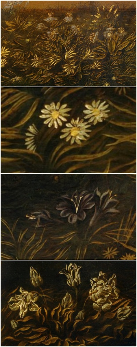 E questo tappeto di fiori è un trattato di botanica, tutte le specie dei prati toscani sono raffigurate con estrema precisione scientifica,risultato dell’osservazione minuziosa e delle intuizioni geniali di Leonardo.
