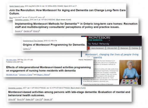 Ad adattare il metodo Montessori agli anziani è stato il professor Cameron Camp, i cui lavori hanno dimostrato che attività che prendono spunto dal noto metodo riescono ad aumentare significativamente l’impegno positivo di persone affette da demenza rispetto ad altri tipi di proposte.