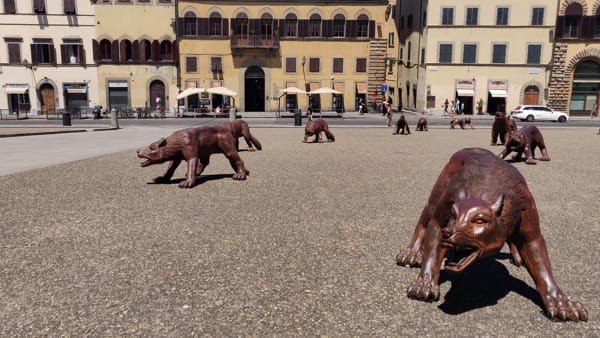 Lupi di metallo “a protezione” di piazza Pitti e Santissima Annunziata.