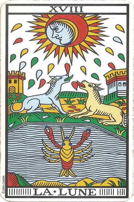 La Luna nei tarocchi ci parla di mistero, inconscio, utero, memorie perinatali, sogni, paure, meditazioni, non detti, non visti, l’oltre’ a ciò che vedono gli occhi.