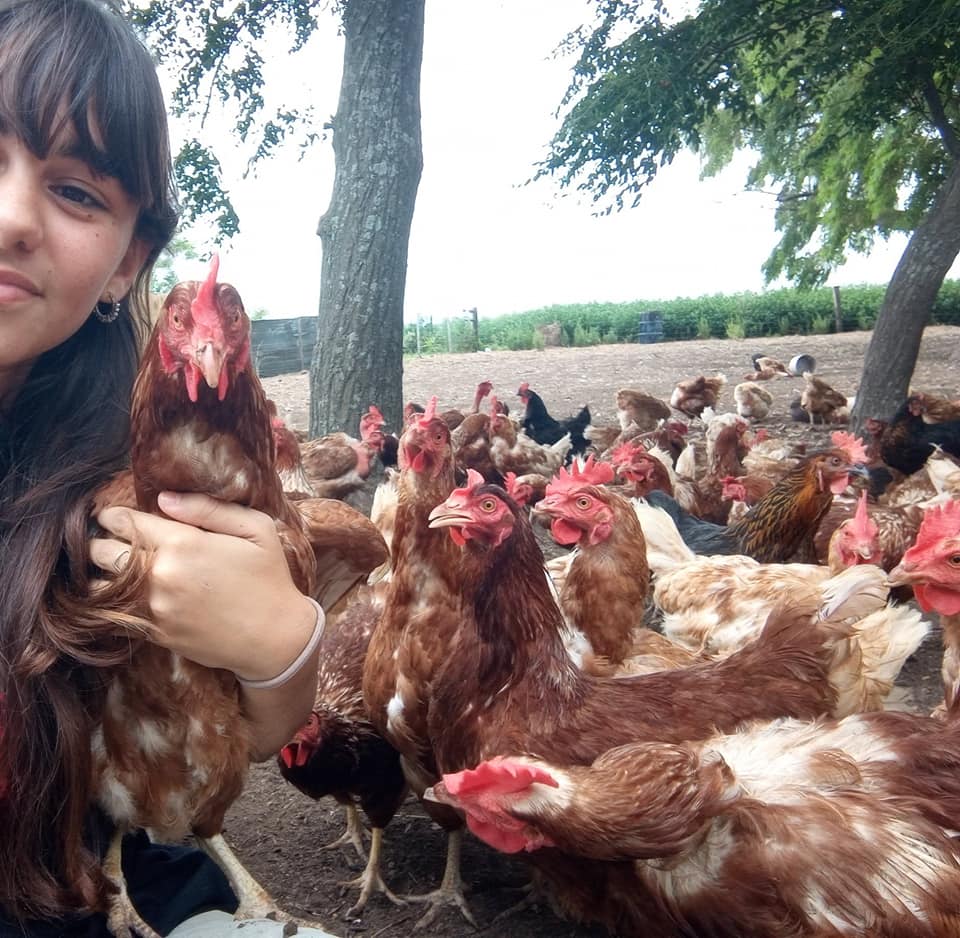 Questa giovane avicoltrice, oltre a lavorare nella propria “impresa”, studia in un istituto tecnico agrario e, per questo, la sua famiglia la aiuta a prendersi cura delle numerose galline ed a vendere le uova.
