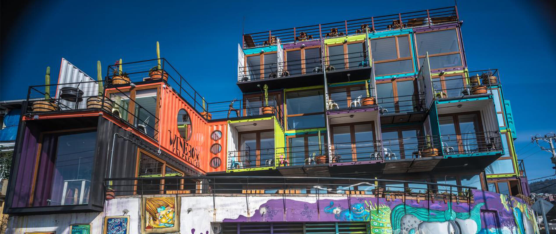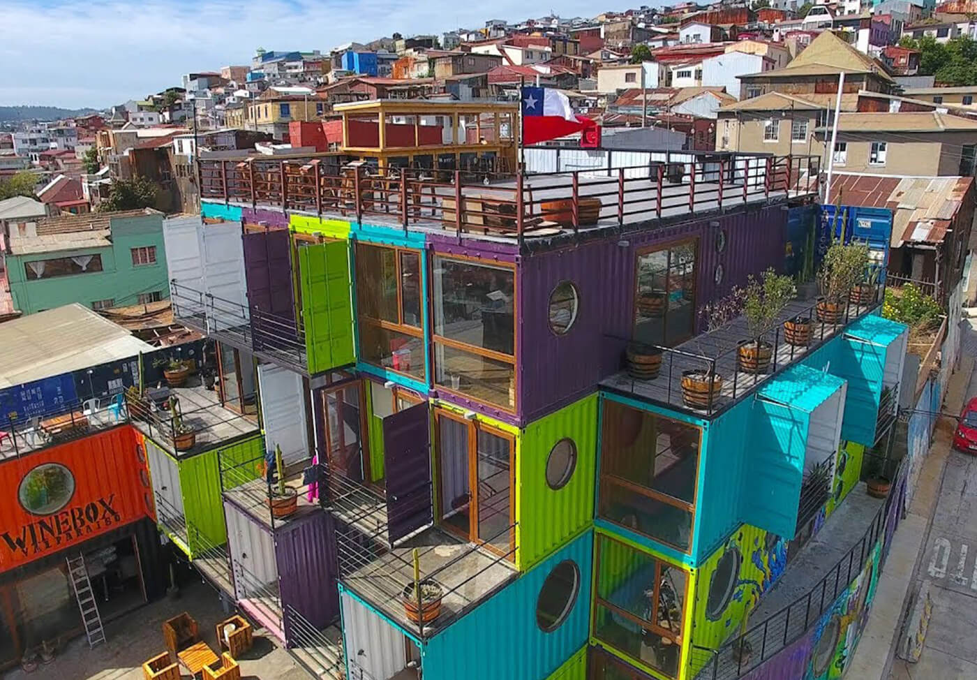 l Wine Box Valparaiso è il primo hotel ecologico del Sud America costruito interamente con container riciclati.