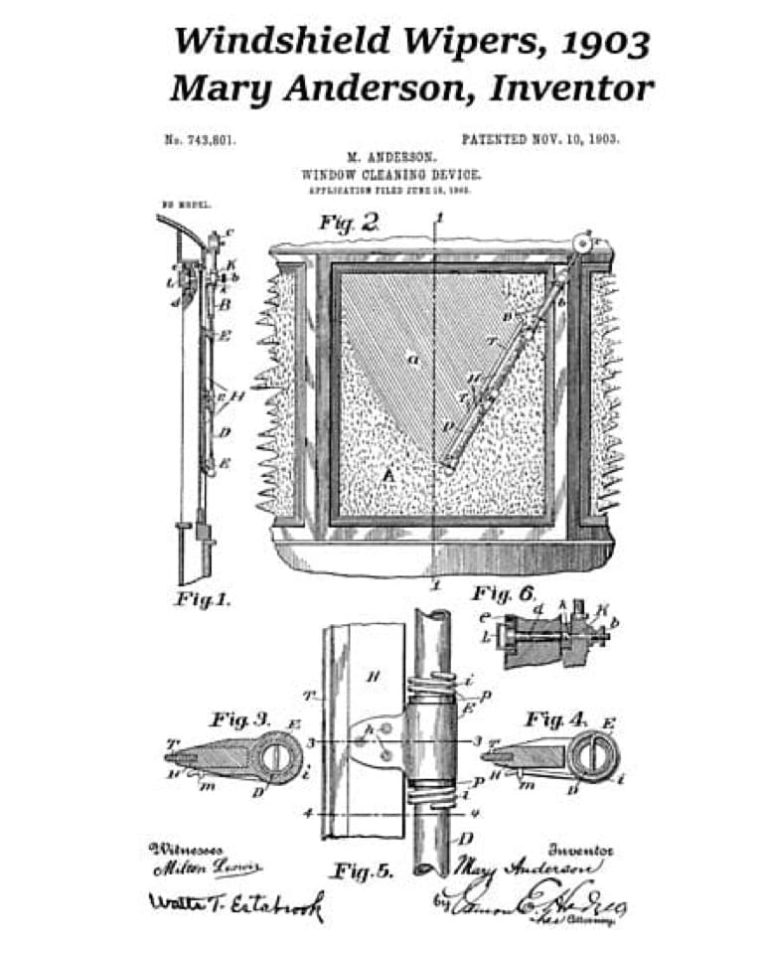 Il 18 giugno 1903 presenta il brevetto per il dispositivo per la pulizia dei vetriche riesce a depositare il 10 novembre successivo, con il numero 743.801 per 7 anni. L’invenzione consisteva in un braccio meccanico oscillante sulla parte esterna del parabrezza dotato di una lama di gomma che poteva rimuovere pioggia o neve. Era stato previsto un contrappeso per far aderire il dispositivo al vetro. Il tutto si azionava dall’interno della vettura, manualmente, con una leva. Inoltre, era rimovibile in modo da non “dar fastidio” alla vista quando non era necessario.