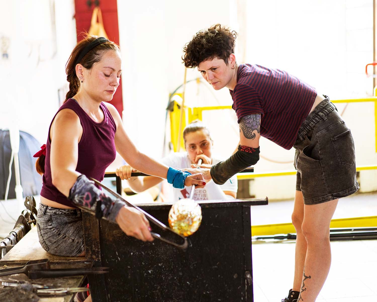 Qui, l’importante è seguire una ricerca libera e fluida. “Il vetro è una materia viva”, spiega Chiara, “e nel lavorarlo ci mettiamo un pezzo del nostro cuore. Ci piacerebbe condividere questa passione con tante giovani donne e non solo”. Oggi, insieme a Chiara e Mariana, lavora anche una giovane stagista. “Bisogna credere in quello che si fa, nella propria passione. Non importa dove si arriverà, quello che conta è il percorso”.