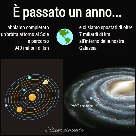 Come ogni anno, nel 2021 abbiamo percorso 1,6 milioni di km ruotando attorno all’asse terrestre, 940 milioni di km attorno alla nostra stella e siamo sfrecciati per ben 7,2 MILIARDI di km nella Via Lattea.