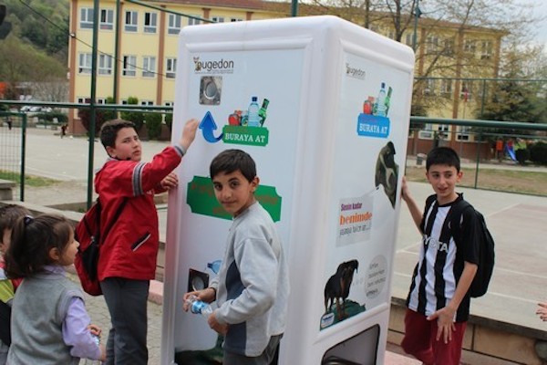 Si tratta di distributori di cibo per animali randagi che accettano bottiglie di plastica da riciclare e in cambio offrono razioni di cibo e acqua. Il funzionamento, semplice ed economico, si basa quindi sullo scambio tra plastica e cibo, praticamente a costo zero, dal momento che i contenitori riciclati coprono per intero l’acquisto dei pasti dei randagi.