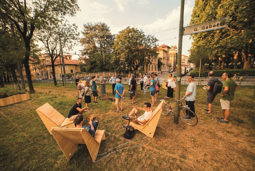 “L’idea di realizzare questo progetto è stata una risposta al primo lockdown, quando ci siamo resi conto di aver voglia di fare qualcosa di concreto. Trasformare in parco uno spazio inutilizzato e degradato è un gesto che dimostra come, anche con poco, si possa valorizzare il potenziale di molti spazi urbani che hanno perso funzione e identità”, ci spiegano i componenti di questo progetto attivo dal 2014 come lavoro collettivo di visione urbana, fondato da Luca Ballarini dello studio torinese di progettazione e comunicazione Bellissimo.