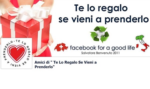 LUGANO – Dare una seconda vita agli oggetti che non si usano più. E’ questo lo scopo di “Te lo regalo se vieni a prenderlo”, gruppo su Facebook che promuove il re-utilizzo tramite regalo di qualsiasi tipo di oggetti. La prima finalità è quella di diminuire l’inquinamento, evitando di sovraccaricare le discariche con prodotti ancora funzionanti.