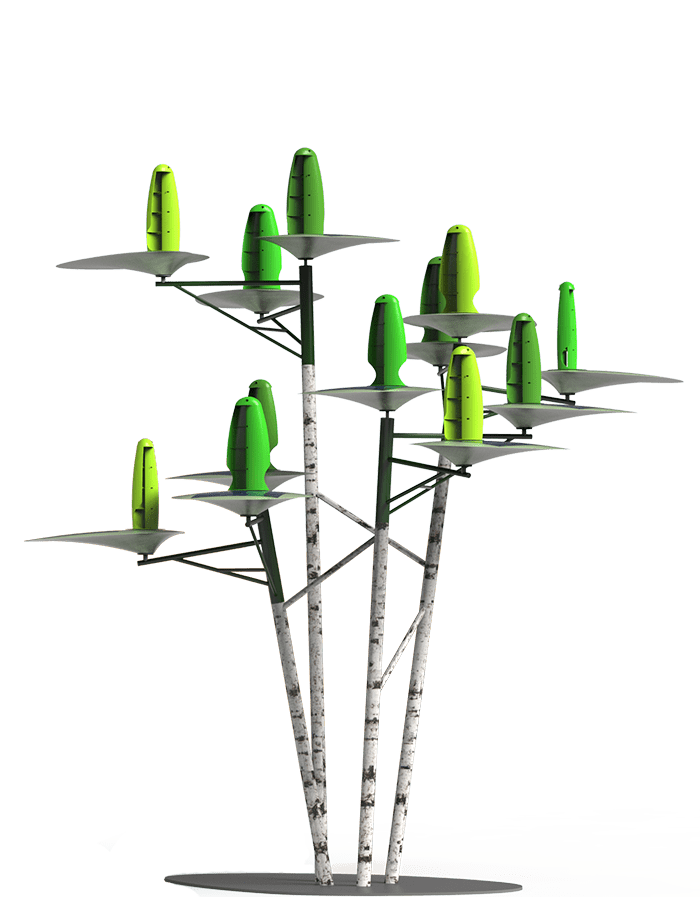 L’idea, infatti, venne ai creatori proprio pensando alla brezza tra le foglie mentre passeggiavano in una piazza di Parigi, e così hanno deciso di iniziare a sviluppare in senso tecnologico questa intuizione: perché non costruire una turbina del vento che non richieda troppo spazio e che non produca troppi decibel di rumore? Il fattore in più, poi, doveva essere un design che permettesse agli alberi del vento di inserirsi bene nel tessuto anche urbano, superando l’idea delle turbine relegate sulle cime delle montagne a impedire l’orizzonte.