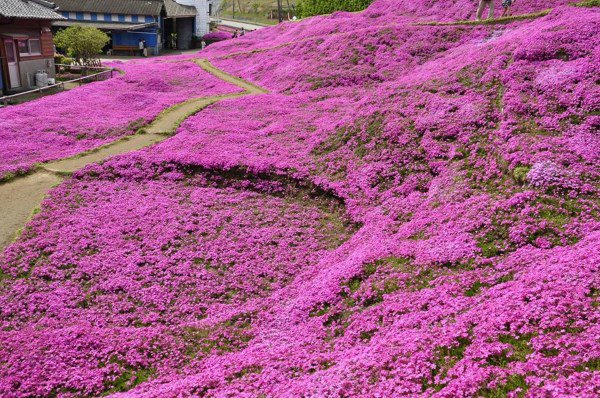 Il loro giardino è oggi un vero e proprio museo a cielo aperto che fiorisce in primavera mostrando un tappeto di fiori rosa chiamati Shibazakura o Phlox.in italiano “muschio rosa”.