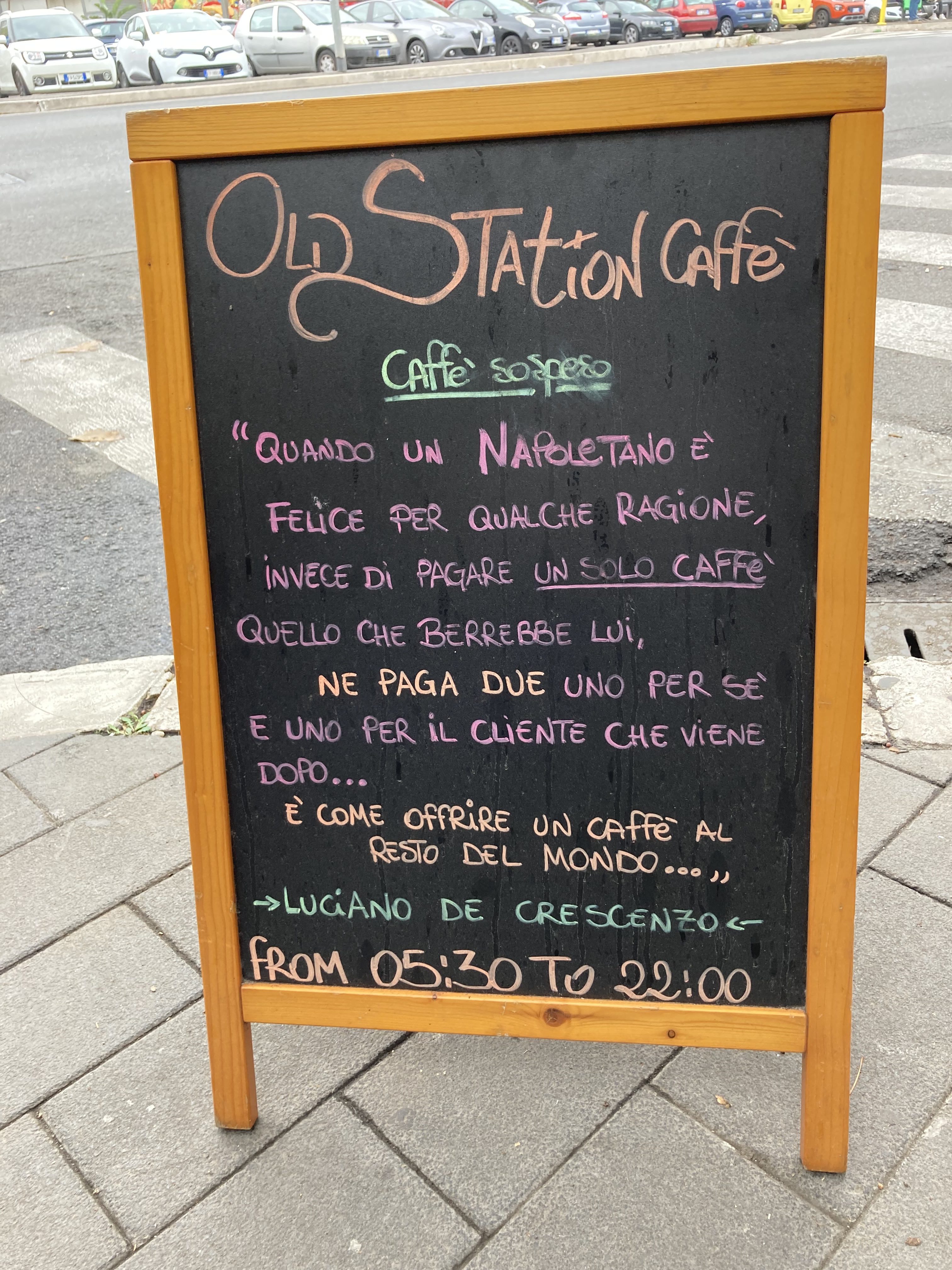 (Luciano de Crescenzo, “Il caffè sospeso,” )