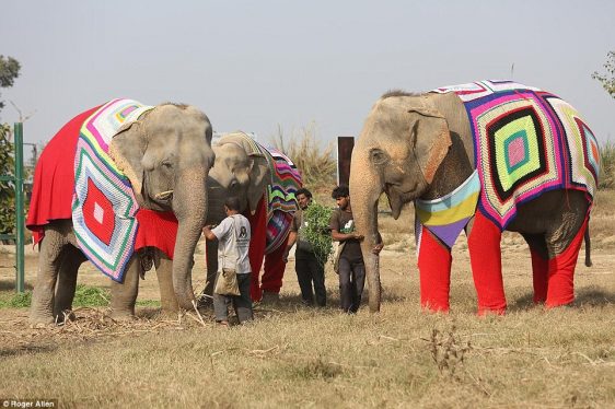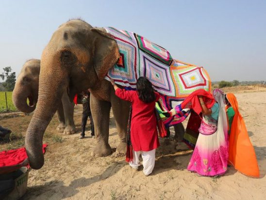 I volontari di queste due associazioni, infatti, sono arrivati alla conclusione che, per salvare una seconda volta questi elefanti, bisogna fornire loro degli indumenti caldi. E allora, si inizia a lavorare a maglia per i giganti buoni: i volontari realizzano enormi ‘maglioni’ per tenere al caldo i mammiferi. Gli elefanti, infatti, sono i più grandi mammiferi terrestri esistenti e vestirli non è semplice.