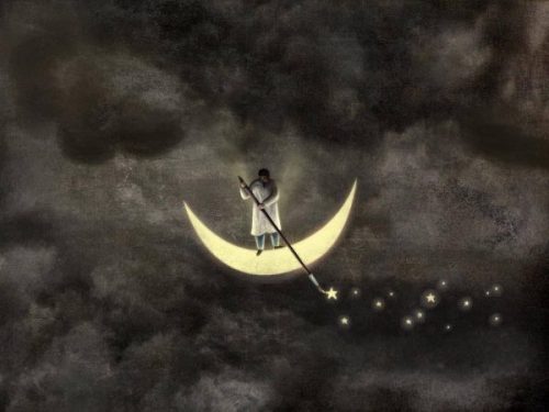 Quando la luna lo venne sapere si intristì, e decise di scendere sulla terra a vedere con i suoi occhi. Così, avvolse il suo bagliore in un mantello di velluto nero si ritirò dal cielo per dirigersi verso il confine delle paludi.
